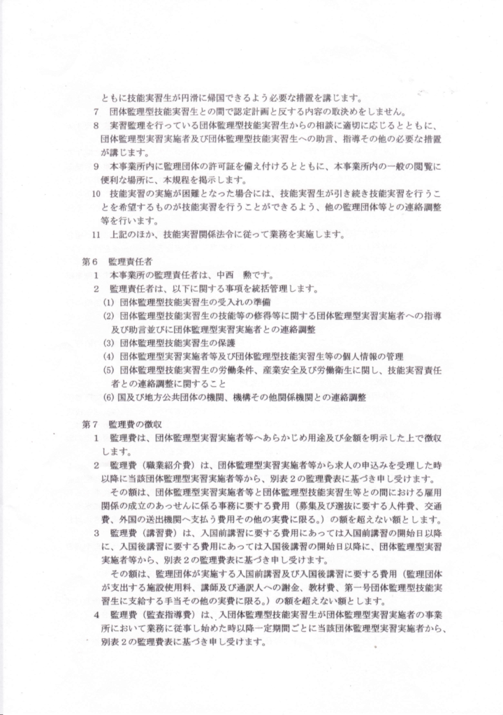 外国人の技能実習の適正な実施及び技能実習生の保護に関する法律及びその関係法令に基づいて、本事業所において 監理事業を行うに当たって必要な事項について、規程として定める「監理団体の業務の運営に関する規程」を公開します。